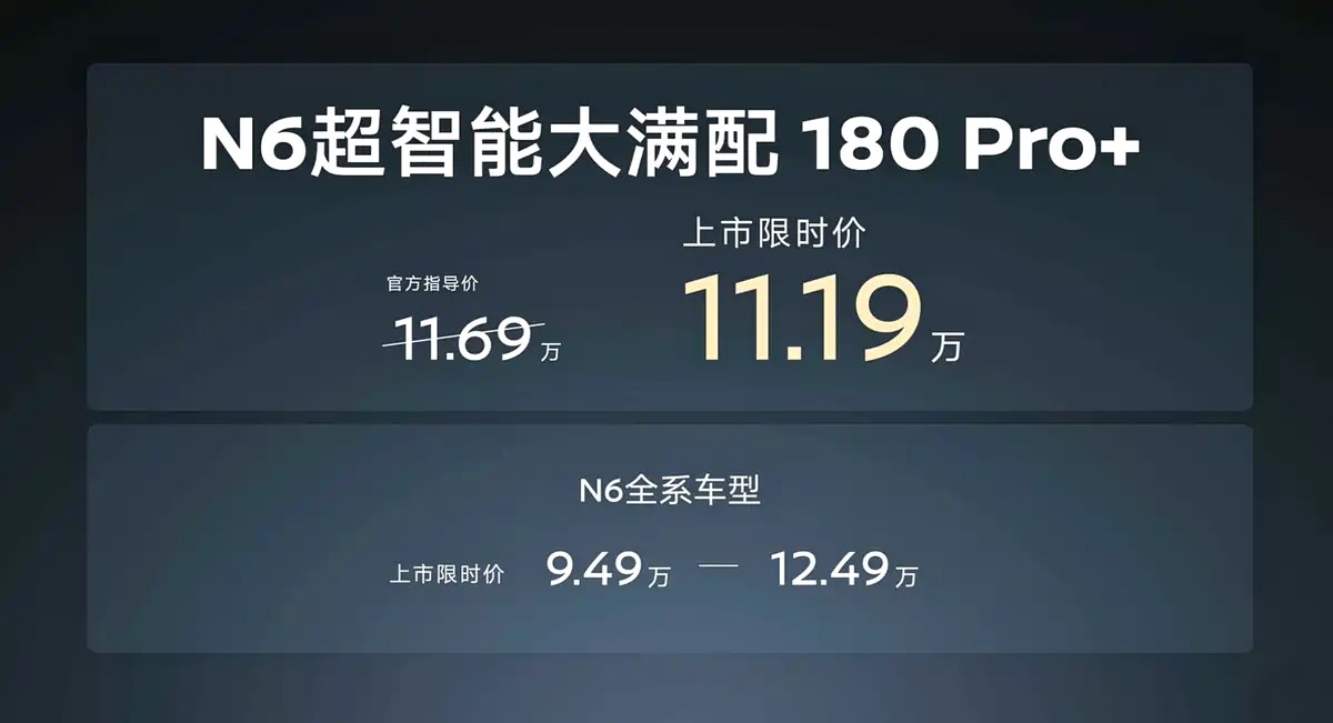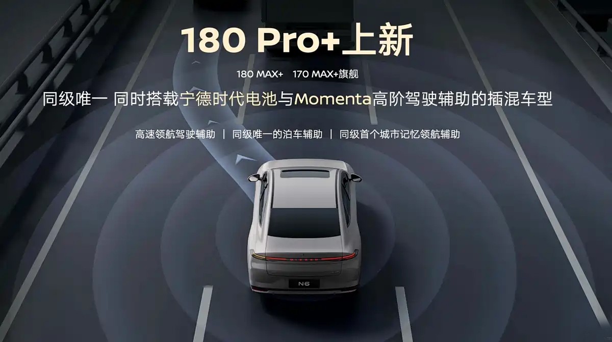 产品方面,日产N6 Pro+版本新增了湖光蓝的外观车漆,令整台车的颜值再次提升不少。除此之外,N6也是行业首个采用8775芯片xMomenta飞轮大模型舱驾融合方案的车型,具备一定程度的高阶智能辅助驾驶能力。