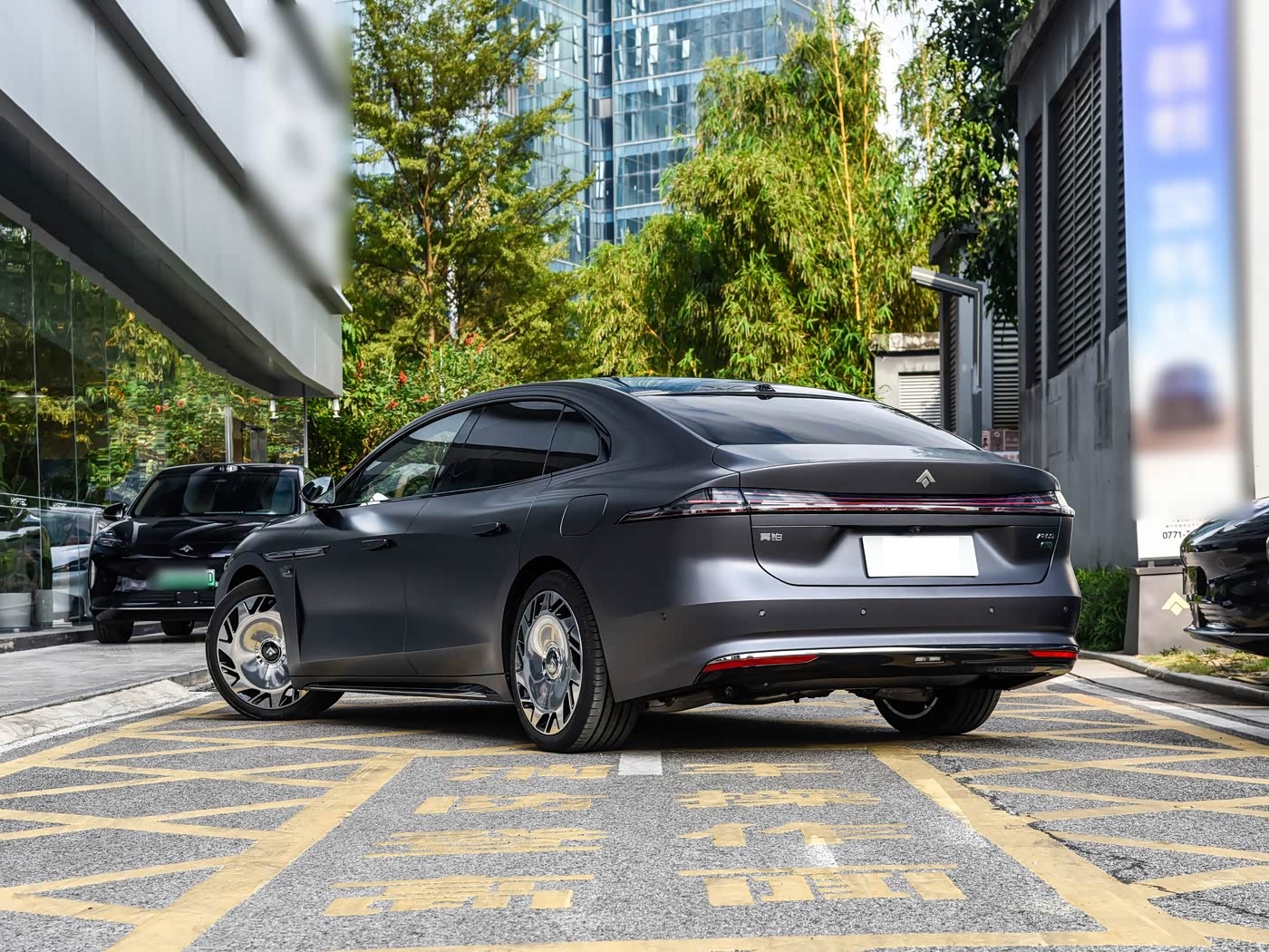 再来看车身侧面部分,风弧式腰线从车头延伸至车尾,搭配无框车门设计,运动感十足。5130mm×1966mm×1500mm的车身尺寸与3020mm轴距,在同级中属于标准中大型车范畴,但通过轮高比设计,后排空间得房率出色,腿部空间表现超越部分C级车型。隐藏式门把手与20英寸低风阻花瓣式轮毂的组合,既优化了超低风阻系数,又兼顾了实用性与美观性。