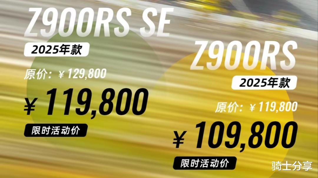川崎Z900RS所销售为2025款,该车会有两个版本,降幅为10000元,其中Z900RS活动价109800元、SE版119800元。