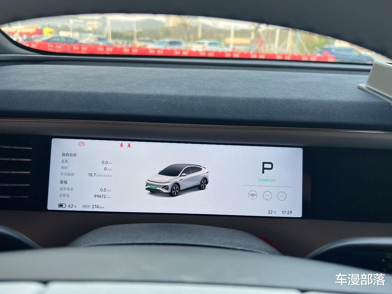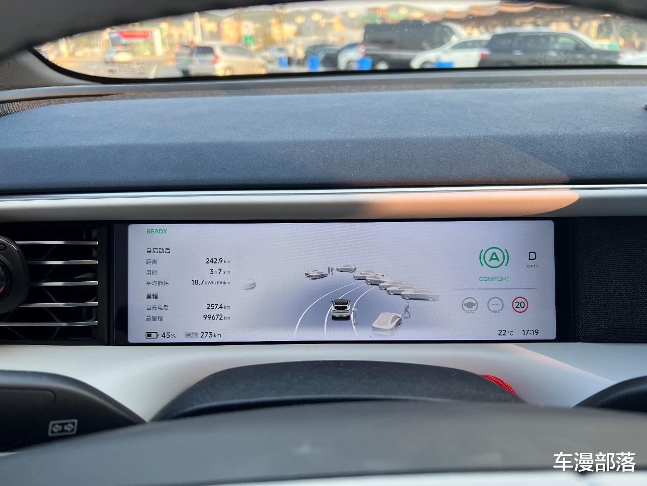 总的来说,将近10万公里的电车,22°的天气,跑了300多公里,大部分还是高速,最终续航达成率接近78%,跟新车是基本没差的,它的电池比想象中还要硬挺一些。