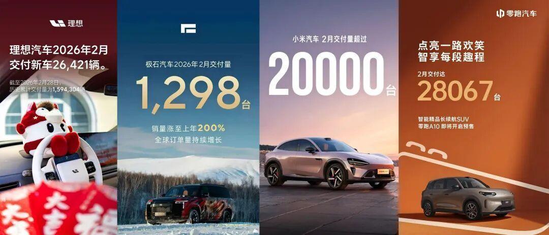 每月1号本是车企争先报喜的时刻,然而直到3月1日中午,仅有小米、零跑、理想及极石汽车四家发布了各自的2月销量数据。