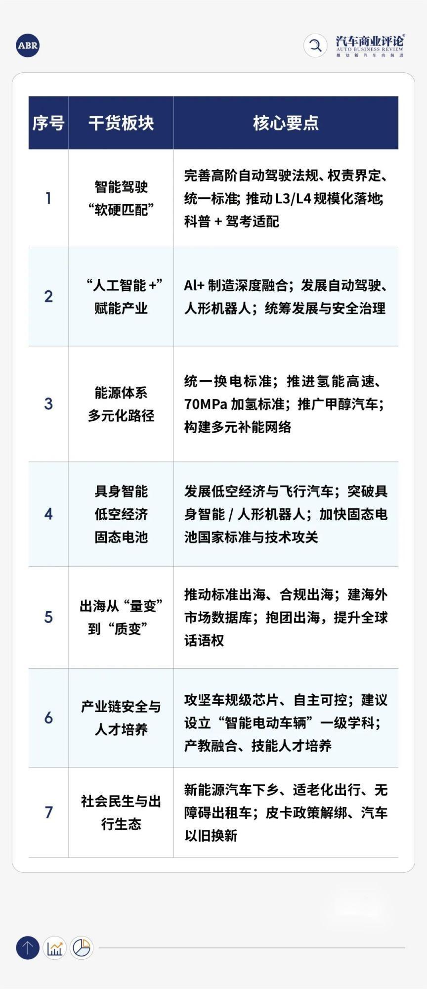 这些议题看似分散,实则脉络清晰:向上,是自动驾驶、人工智能、低空经济等新质生产力的技术突破;向下,是激活农村市场、下沉渠道的消费挖潜;向外,是应对贸易壁垒、深耕全球化的合规破局;向内,则是补能体系建设等基础设施的最后一块拼图。