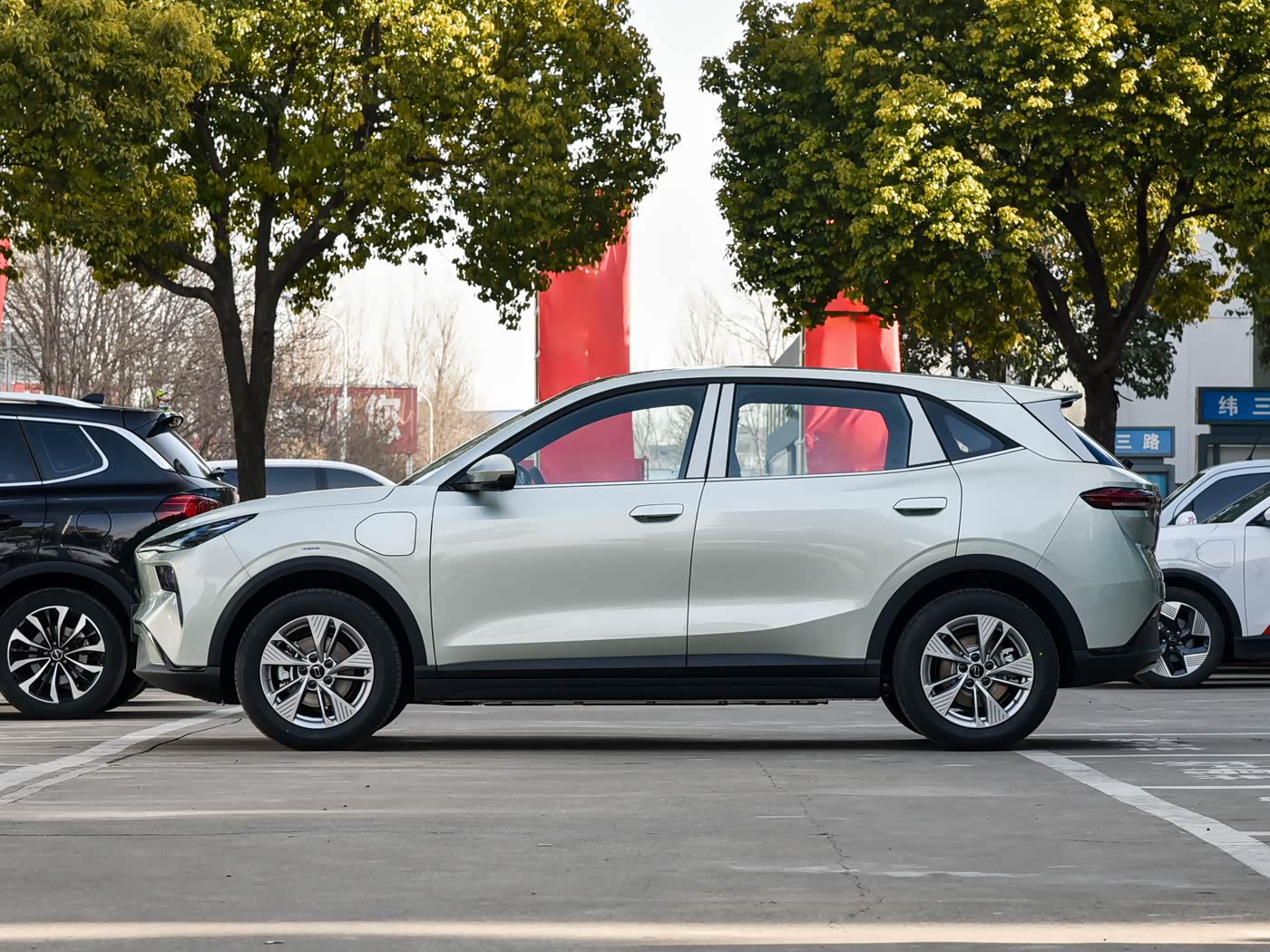 再来看车身侧面部分,车身侧面线条流畅舒展,上扬的腰线从前翼子板一直延伸至车尾,营造出向前俯冲的动感姿态。车门区域没有过多复杂的装饰件,保持了简洁的风格,搭配低风阻隐藏式门把手和低风阻轮圈,进一步降低能耗。车身尺寸方面,长宽高分别为4450/1860/1635mm,轴距达到2750mm,在同纯电SUV中优势明显,为车内宽敞的空间奠定了基础。充电接口设置在前翼子板位置,不仅美观,还能在充电时让车辆与充电桩保持更直接的连接路径,使用起来更加便捷。