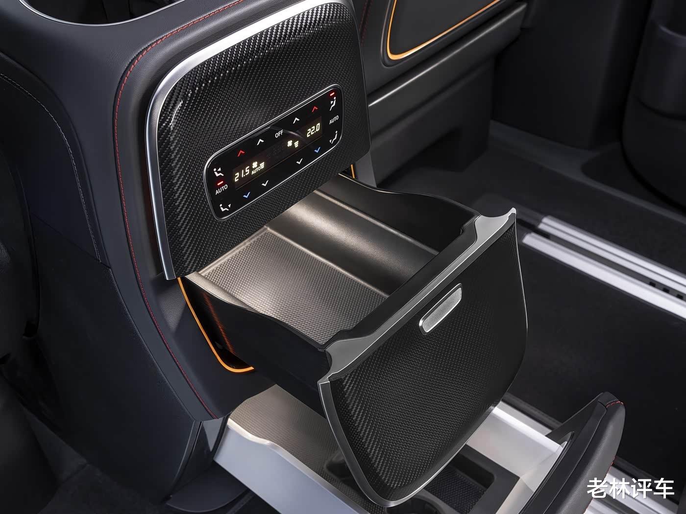 座椅方面,新车采用的2+2+3的7座布局,第二排是VIP座椅,支持腿托调节、靠背调节和前后调节,它的腿部空间很有优势。值得一提的是,后排空调屏幕下方还有一个抽屉,不知道有没有制冷和制热功能。