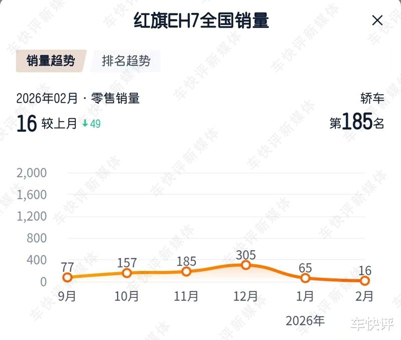 特别是今年2月,红旗EH7销量更是创下了新低,只卖出了16辆车。销量如此之差,红旗EH7的问题出在哪?