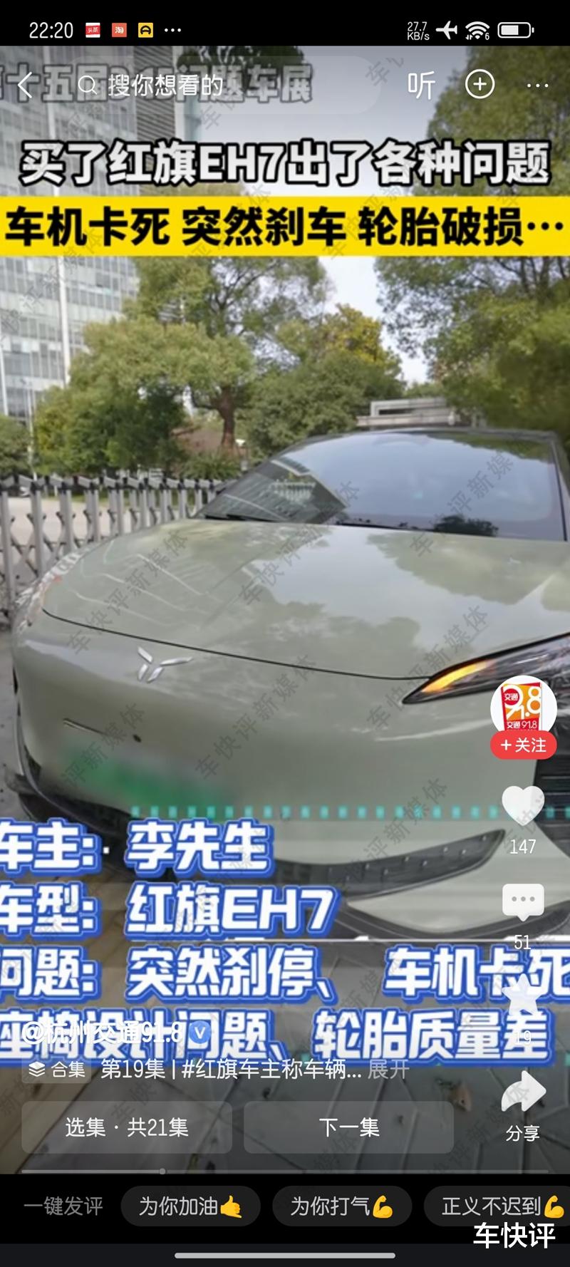 当他把问题反馈给红旗4S店后,工作人员的答复是真撞上了也是后车全责。这样的回答,真是让人感到啼笑皆非。你说就这质量和服务态度,红旗EH7能卖好吗?