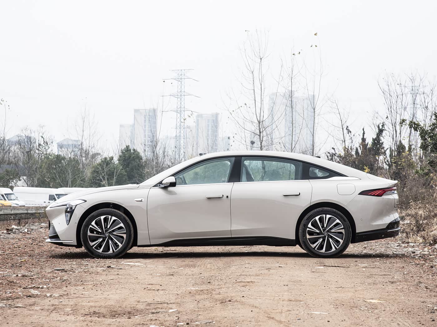 再来看车身侧面部分,车身侧面延续经典的溜背式豪华比例,长宽高分别为 5032mm×1952mm×1500mm,轴距达 3000mm,定位中大型轿车,车身比例协调,长轴距设计为车内空间提供了充足保障。无框车门搭配隐藏式门把手,进一步降低风阻系数,同时提升车门处的精致感,轻触即可电动弹出,操作便捷。腰线采用贯穿式设计,从车头延伸至车尾,配合轮眉和侧裙隆起的筋线,勾勒出车身的肌肉感,展现出旗舰轿车应有的稳重与大气。细节方面,新车配备全新设计的 19/20 英寸多辐式轮毂,高配车型采用铝合金抛光材质,视觉效果高级。