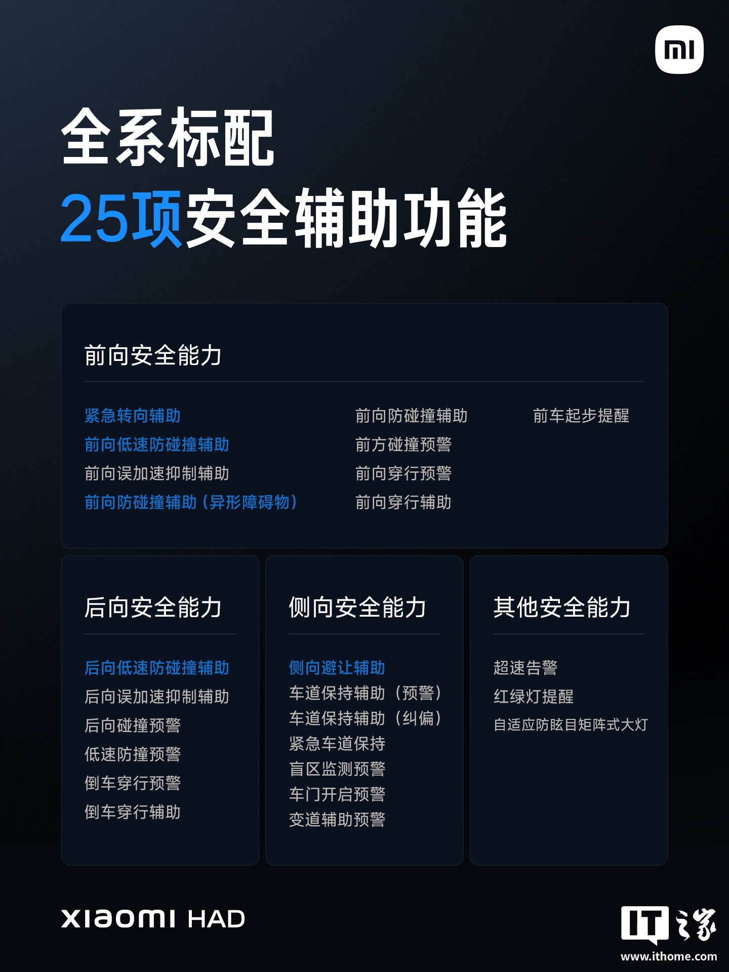 软件上:全系标配小米HAD,搭载小米XLA认知大模型,三大能力提升。