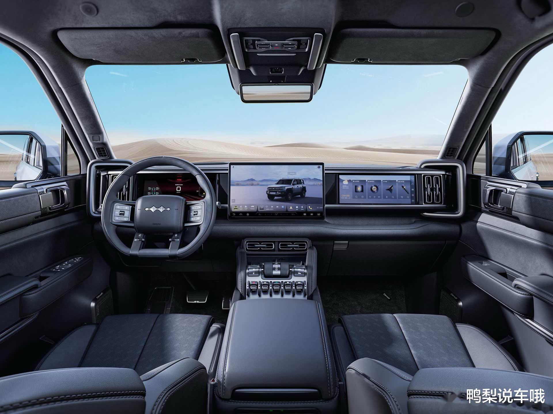 先说说价格和车型,这款车目前在售共2款车型,分别是基础版和智享版,官方指导价分别为28.58万和29.98万。目前优惠后售价区间28.28万~29.68万。外观不用多说,硬派机甲风,方方正正的线条搭配背负式全尺寸备胎自带气场。尺寸上,长宽高分别是4964x1970x1905mm,轴距为2850mm,最小离地间隙224mm,接近角33°、离去角31°。