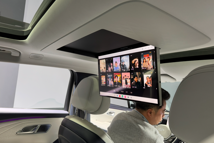 乘坐方面,前排配备双零重力座椅,采用16向电动调节,同时配备座椅记忆、腰托、腿托等功能,后排座椅同样配备座椅通风加热,支持35度电动靠背调节,车顶搭配17.3英寸二排吸顶屏,和前排屏幕组成双区独立的IMAX星空影院,并搭载同级少有6铰链小桌板。