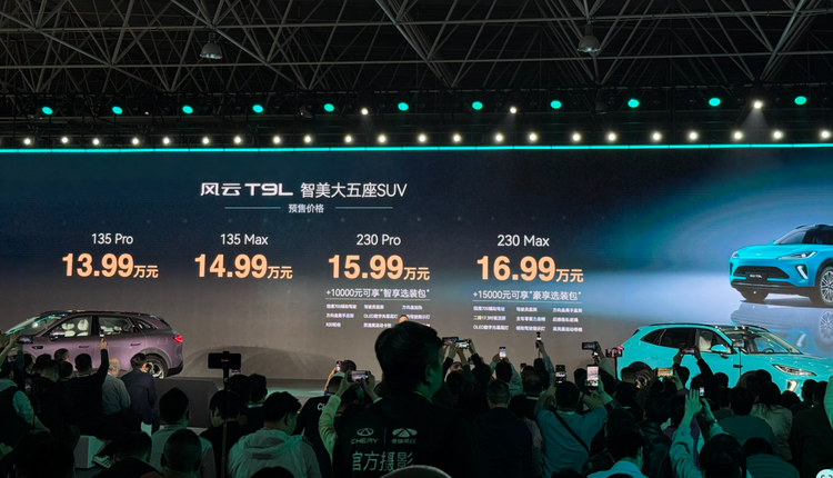 3月25日,奇瑞风云T9L开启预售,新车共有4款配置,预售价为13.99万~16.99万元。同时厂家也公布了预售期间购车权益,包括2000元可得惊喜礼盒、限时免费赠送价值6000元高定车漆、最高5000元置换补贴、以及3年0息贷款权益等。