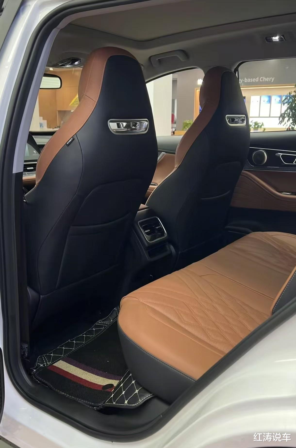 新款瑞虎7的副仪表台是上下双层结构,上面一层有存放手机的面板、USB接口、带盖板的杯托,座椅进行了菱形缝线处理,主驾是电动调节,后排空间谈不上多么出众,但满足一般家庭完全足够。