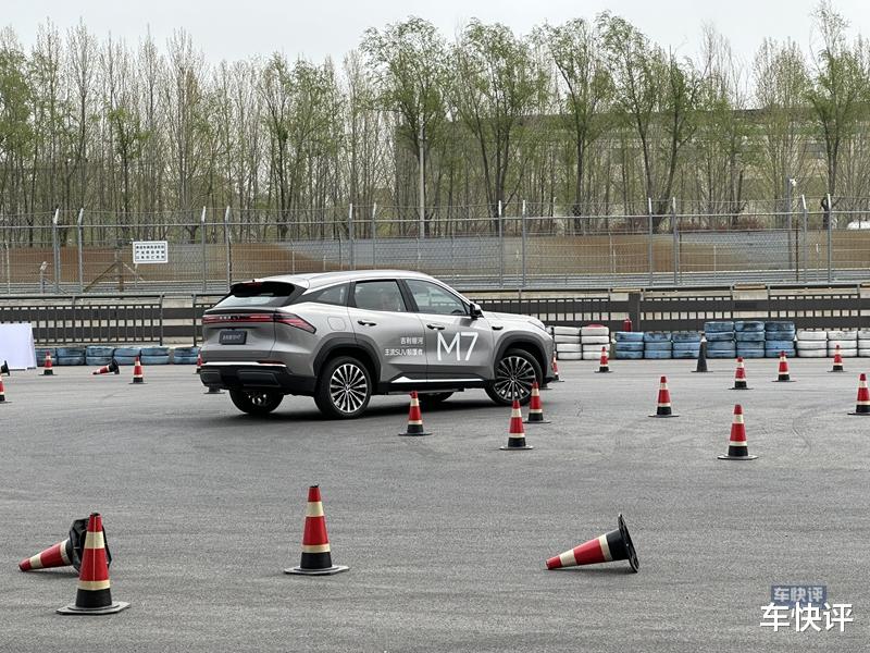 在活动现场,简单试驾了一圈银河 M7,这台车开起来确实非常轻快,特别是中后段动力表现很充沛。AI虚拟底盘技术和自适应可变悬架功能在经过减速带的时候,能够起到滤震的效果提升舒适性。高速过弯也能带来很好的支撑,即便是急刹车也不会有明显的点头现象。