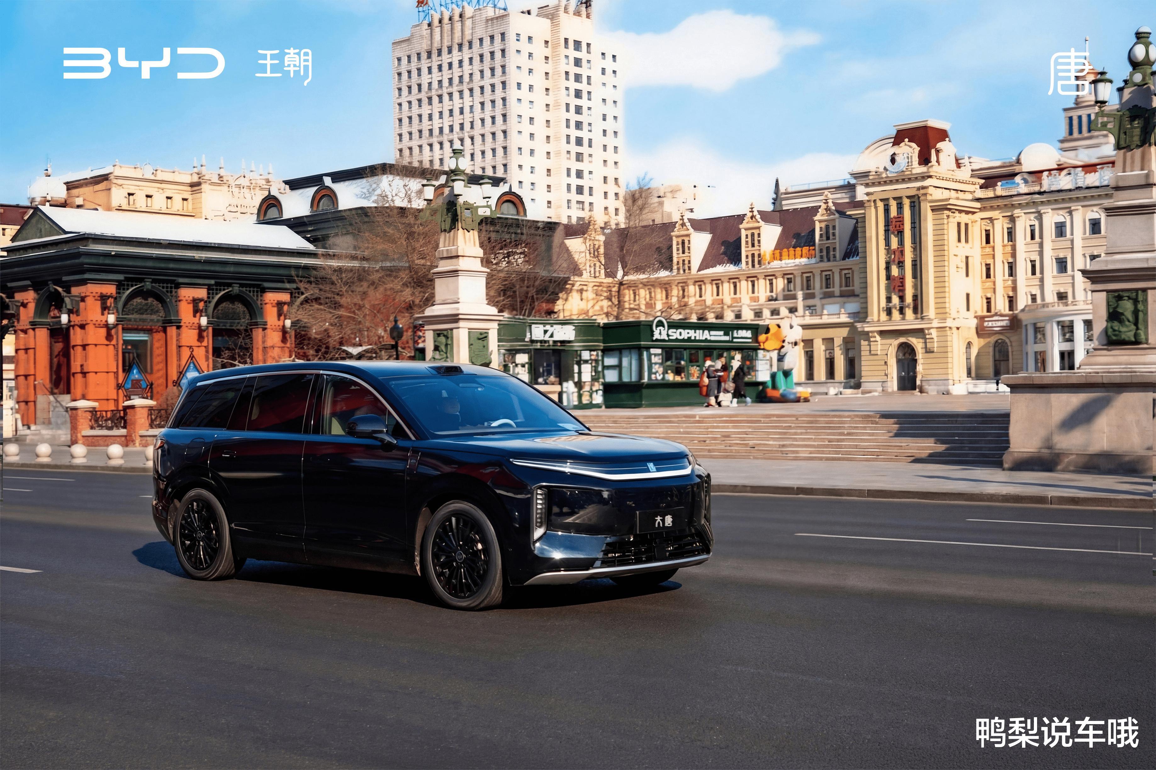 外观采用了比亚迪家族式设计。车内座椅采用Nappa真皮包裹,中控台覆盖哑光木纹饰板与软性搪塑材质;取消所有物理按键,全靠触控操作;标配16.8英寸悬浮旋转中控屏(2.5K分辨率),车机搭载DiLink 5.0系统和7nm高通骁龙SA8295P芯片,支持全场景连续对话,后排还有10.1英寸独立触控屏,能控制空调和娱乐功能。