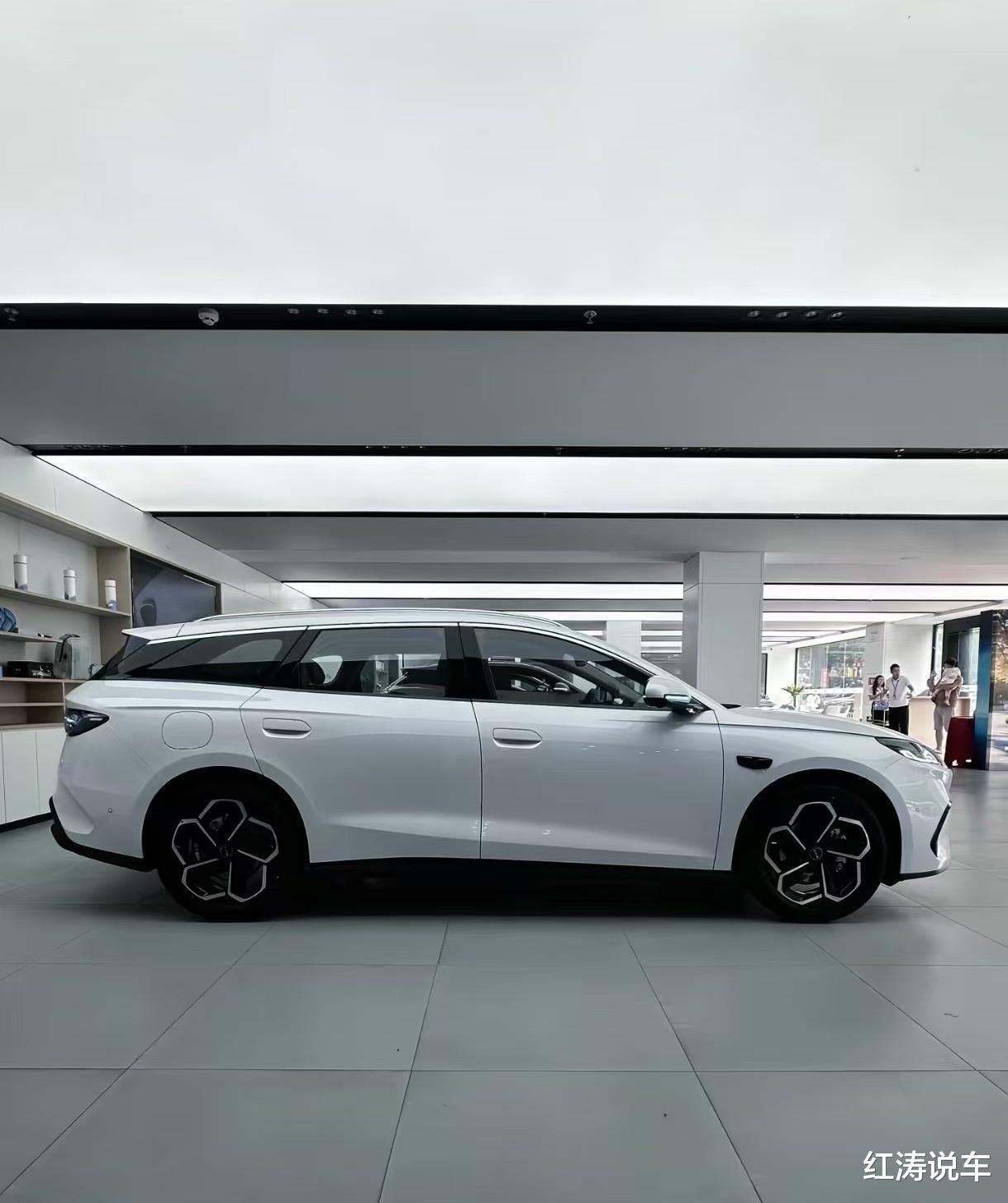 2026款海豹06DM-i旅行版的长宽高分别为4850/1890/1505毫米,轴距为2790毫米,从侧面来看车身修长低矮,姿态流畅自然,还有悬浮式车顶和间断式腰线,营造出一定的运动感,采用半隐藏式门把手,提供17英寸和18英寸轮毂。