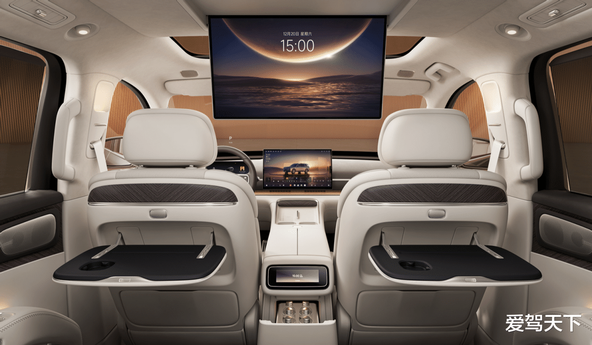 座舱方面,新车同样极具特色,配备了4D机械按摩座椅、地暖系统、21.5英寸后排娱乐屏、B&O音响等豪华配置。