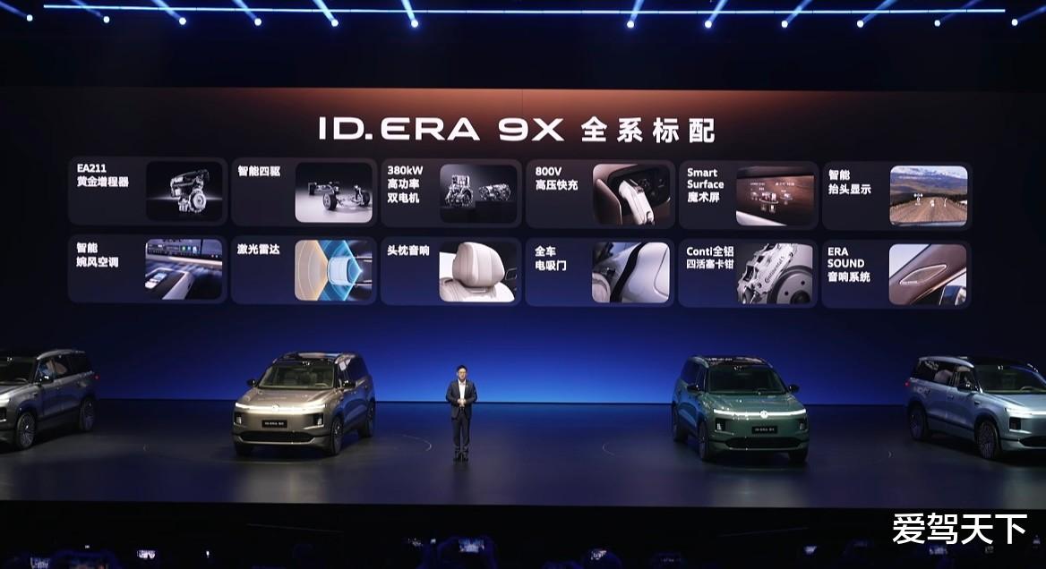 作为家族旗舰车型,ID. ERA 9X最大的亮点在于动力和底盘调校。新车纯电续航达到406km,并搭载全球装机量超2500万台的EA211发动机作为增程器,动力响应和操控表现有不少惊喜。