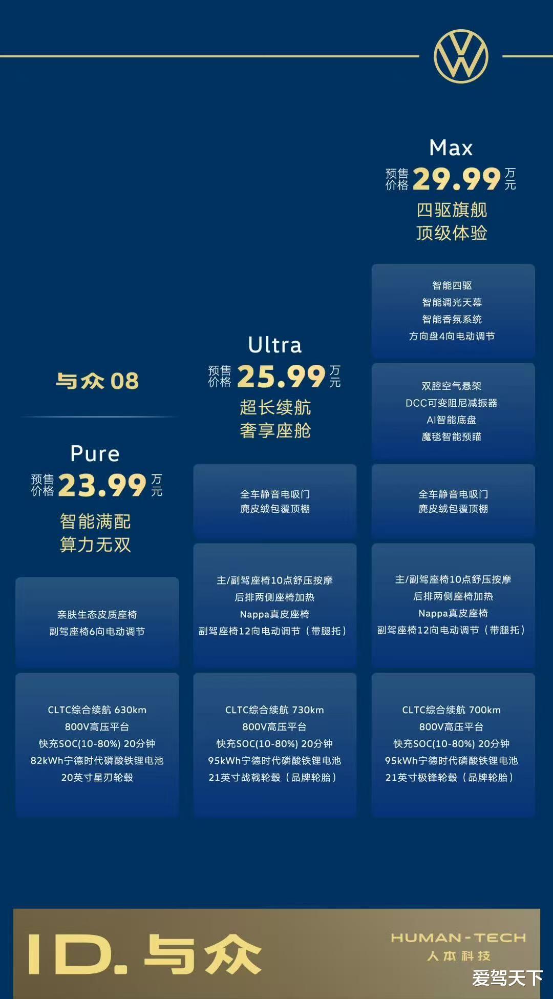 与众08,这是一款“大众底子+小鹏智能”的全新大五座SUV,预售价在23.99万元-29.99万元区间。