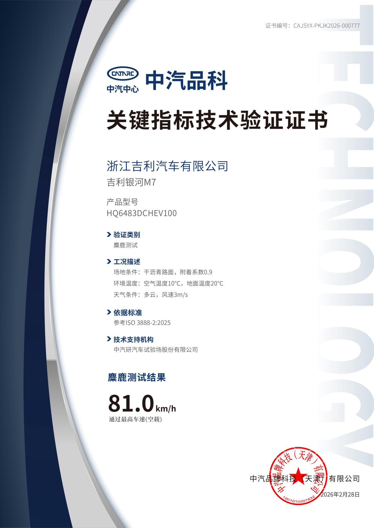 银河M7这次把麋鹿测试做到了81km/h,这个成绩放在SUV里属于“不讲武德”级别。如果说大多数同级SUV的操控能做到“稳”就不错了,那么银河M7则做到了“酷”。这可不是为了“耍酷”,紧急避障时车身稳定可控,高速闪避障碍物不推头不甩尾,这已经不仅是操控乐趣,而是关键时刻能救命的主动安全。