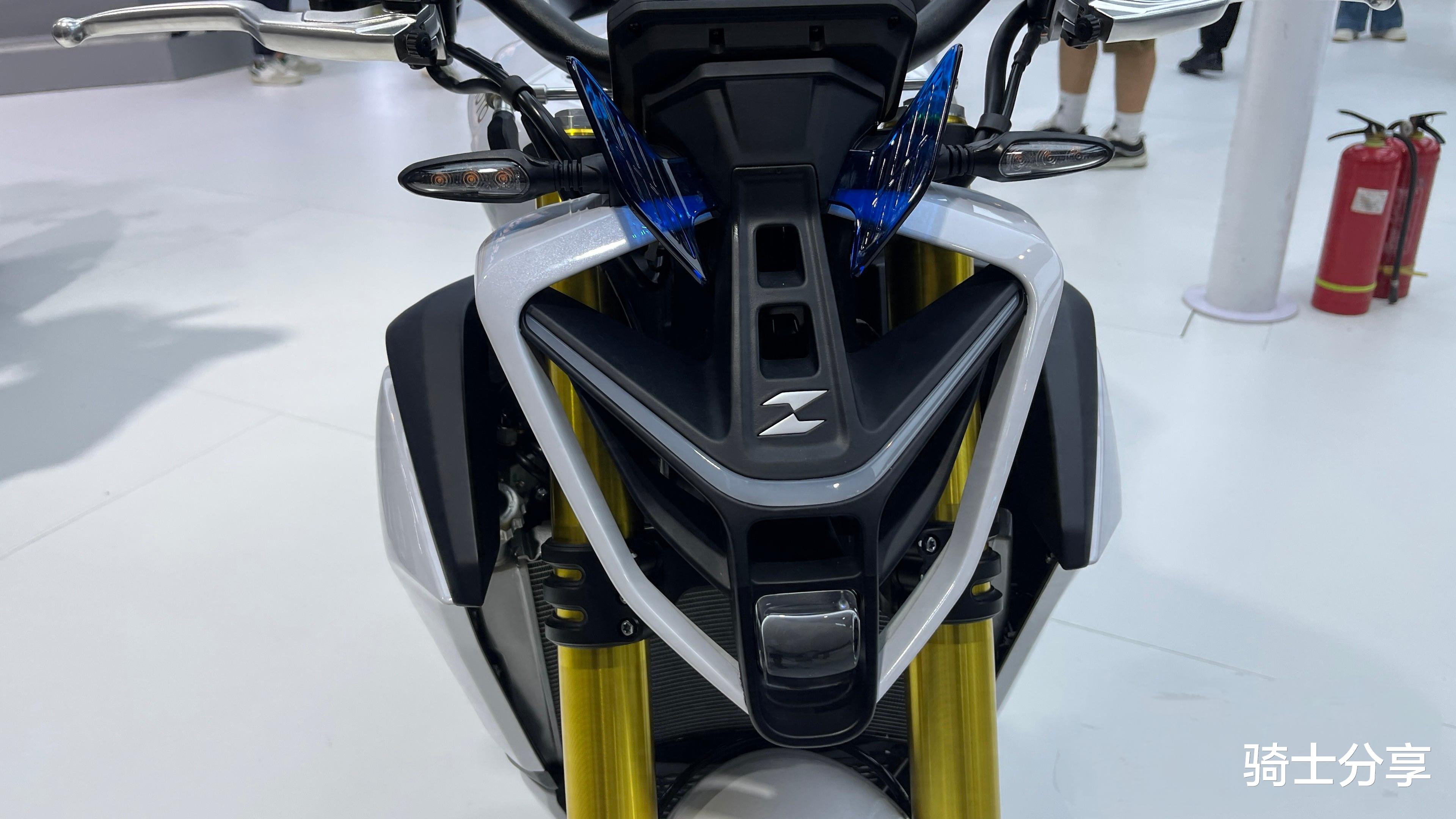 这款车需要重点聊一聊。它属于张雪820三缸系列中的全新款,该车最早亮相于去年重庆摩博会,它和820RR属于同平台车型,其实很多品牌的同排量仿赛和街车都是这种关系。