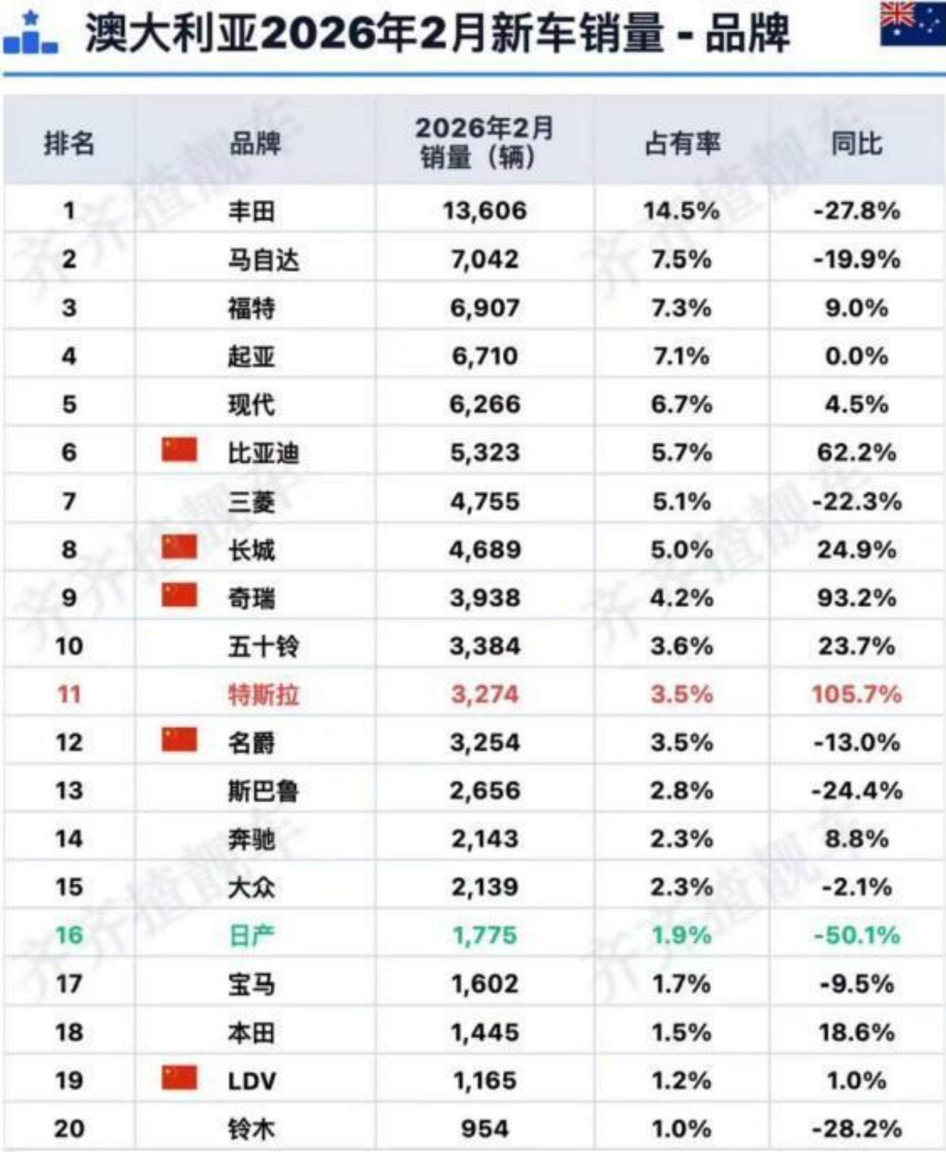 直到2026年2月,澳大利亚汽车市场迎来了一个里程碑式的转折点。