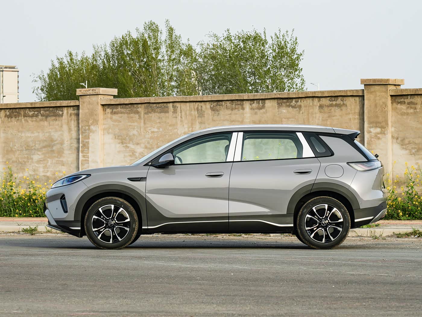 再来看车身侧面部分,新车采用了短悬长轴的设计,4620mm的车长搭配2770mm的轴距,营造出修长的车身比例。半隐藏式门把手、悬浮式车顶以及轮眉和侧裙处的黑色饰板,进一步提升了车辆的运动感与层次感。低风阻轮毂的加入,不仅优化了能耗表现,也让整车看起来更加动感。此外,新车还新增了海贝粉、珊瑚橙两种配色,为消费者提供了更多选择。
