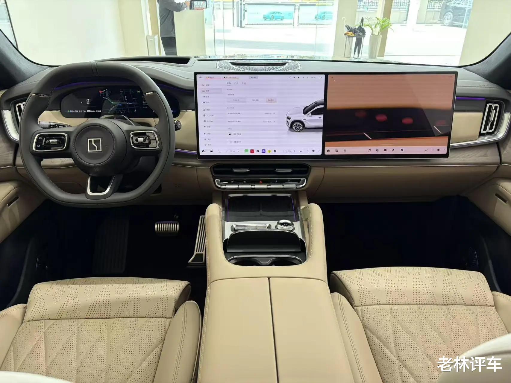 至于内饰配色,有酒红色的、白色的、米白色的、黑色的等,内饰设计基本上和极氪9X大同小异,配备了13.02英寸液晶仪表盘、16英寸3.5K中控屏幕、16英寸3.5K副驾娱乐屏幕和44英寸AR-HUD投屏,其中,中控屏幕和副驾娱乐屏幕采用了“双联屏”布局,屏幕都是全系标配。