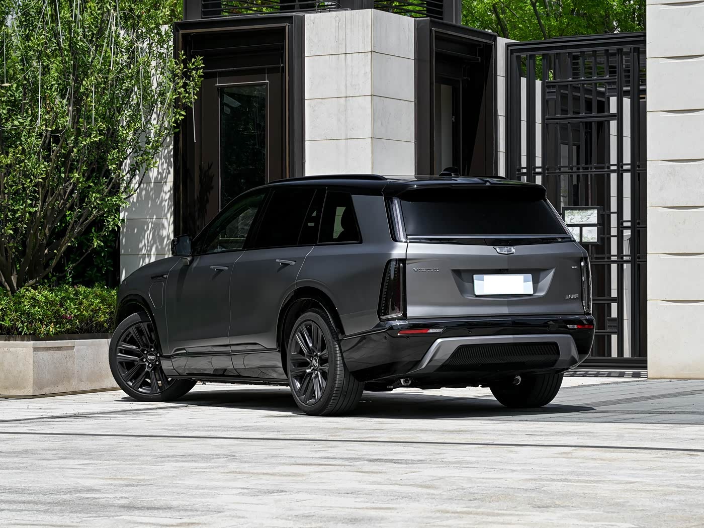 再来看车尾部分,凯威德的车尾造型延续了方正大气的风格,凸字形轮廓搭配宽大的黑色后扰流板,营造出强烈的稳重感与运动感。后风挡两侧的L型灯带与下部直立式尾灯组形成呼应,延续了凯迪拉克标志性的直列式灯语设计,点亮后辨识度极高。黑色灯罩内部的红色光柱,为车尾增添了一抹精致感。宽厚的后包围采用大面积黑色涂装,底部配备的银色护板则提升了车尾的层次感。