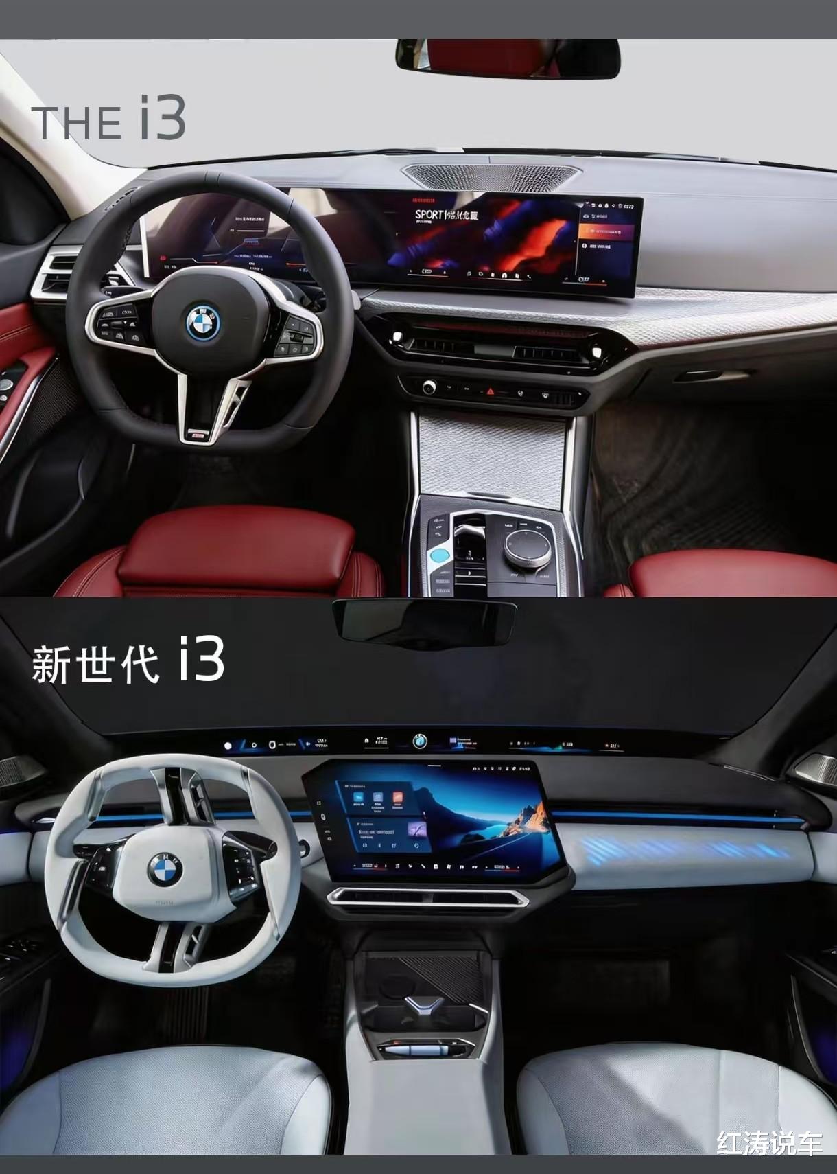 全新宝马i3长轴版的内饰吸引人眼球,搭载全景iDrive+智能座舱,配备17.9英寸无边框中控屏,中控台前端配有43.3英寸视平线全景显示系统,还会提供3D抬头数字显示、哈曼卡顿印象、氛围灯,而多功能方向盘的款式新颖。