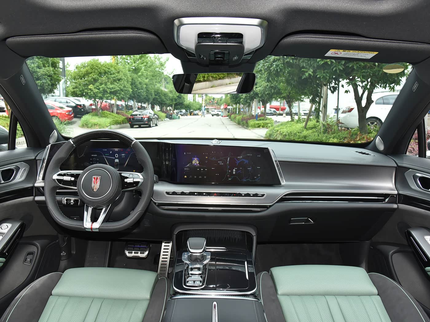 进入车内,内饰采用 “东方意境环抱座舱” 设计,中控台搭载 12.3 英寸液晶仪表 + 15.6 英寸 4K 中控屏 + 9 英寸后排控制屏的三联屏系统,搭配 AR-HUD,科技感与豪华感兼具。座椅为核心亮点,前排座椅支持 16 向电动调节、加热 / 通风 / 按摩 / 记忆功能;后排为行政级零重力座椅,带电动腿托、靠背角度可调(最大 125°)、8 点式按摩与车载冰箱,堪比移动头等舱。空间表现越级,3100mm 轴距带来超两拳后排腿部空间,地板纯平,满载 5 人无压抑感。