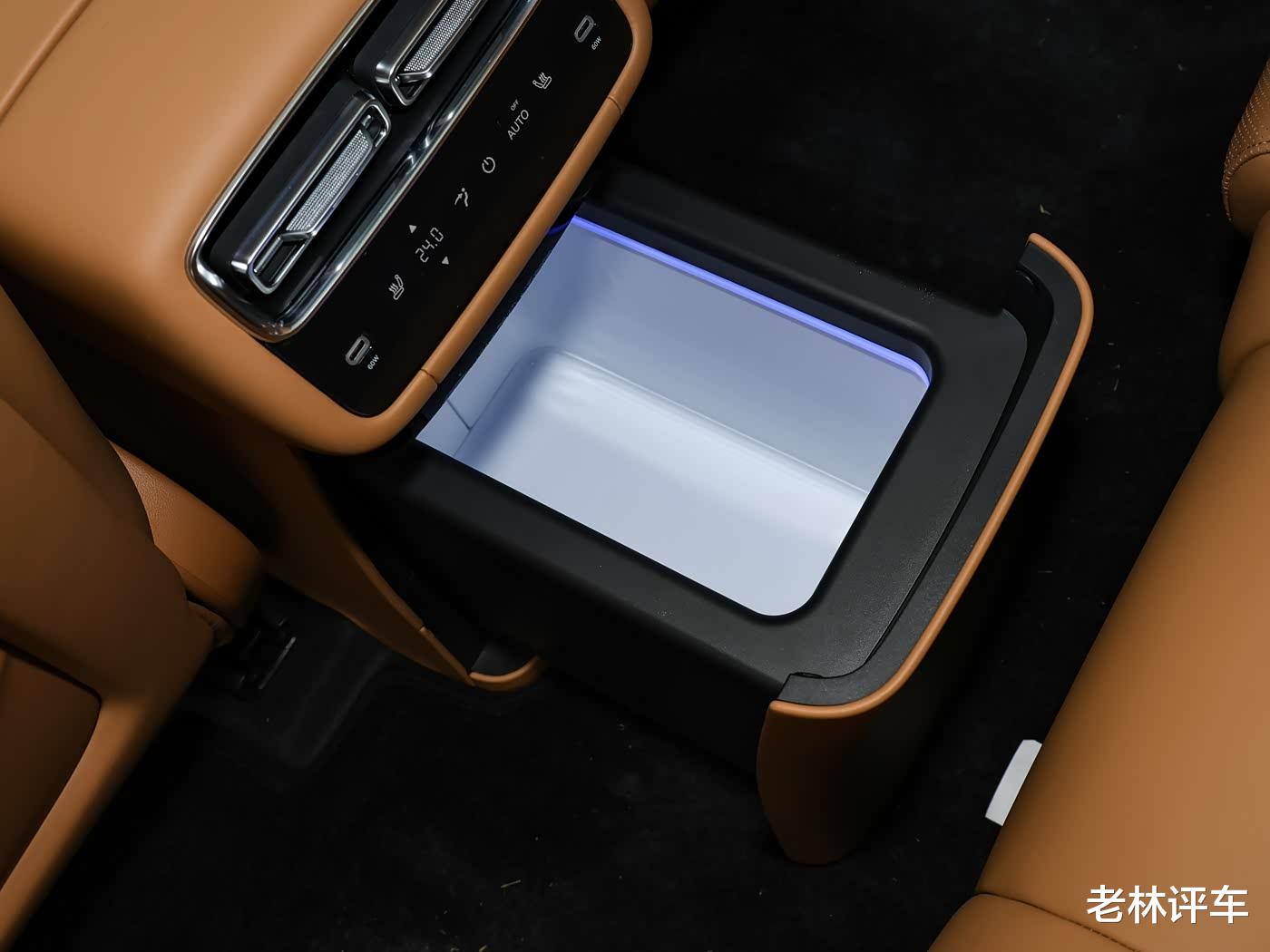 在后排空调出风口下方,配备了车载冰箱,选装价格为3999元,该车还全系标配23喇叭,音响效果很不错,支持环绕立体声,有种身临其境的感觉。