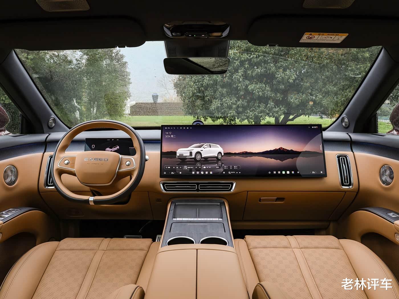 现在的新能源汽车讲究“冰箱沙发大彩电”,星途EX7也不能免俗,它配备了10.25英寸液晶仪表盘+24英寸HUD投屏+30英寸6K中控屏幕,中控屏幕一直延伸到副驾驶前方,画面显示效果十分细腻清晰,在骁龙8295P芯片的加持下,系统运行起来十分流畅,车机功能也十分丰富。