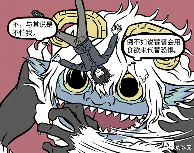 其实饕餮并不是不害怕白泽,只是饕餮是例外,因为饕餮胃口极大,能够把害怕转化为食欲。这么来说了,饕餮高兴的时候,大吃一顿来奖励自己,害怕的时候,同样大吃一顿来安慰自己,无论饕餮有什么情绪,都需要大吃特吃来释放。所以饕餮即便害怕白泽,也是对其追杀,就是为了饱餐一顿。