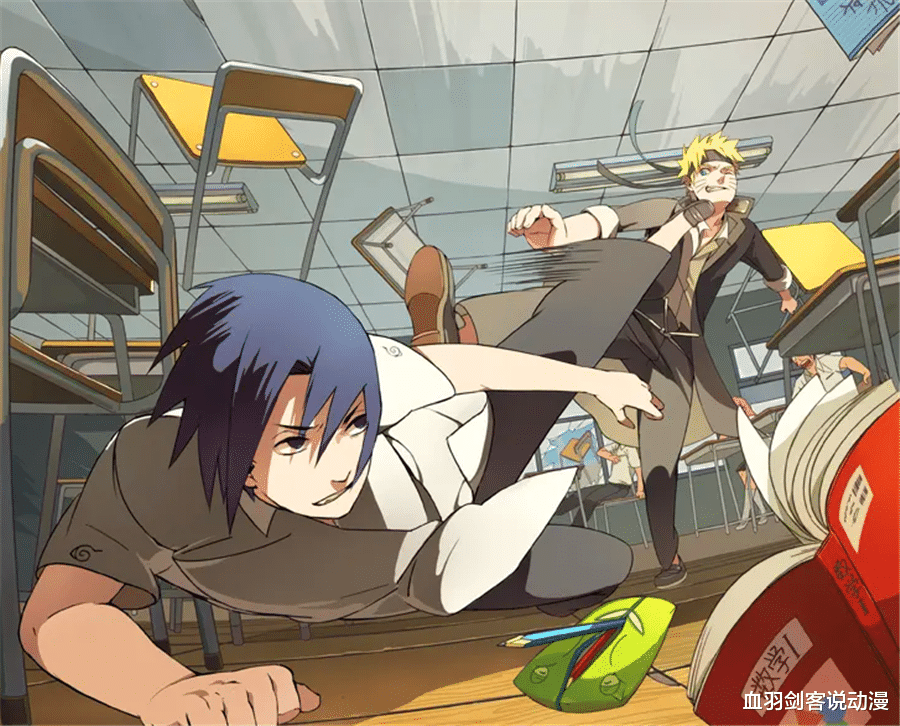 漩涡鸣人和宇智波佐助的羁绊绝对不会因为变成现代校园的学生就改变,所以鸣人和佐助在教室大打出手其实也不算什么意外的事情。