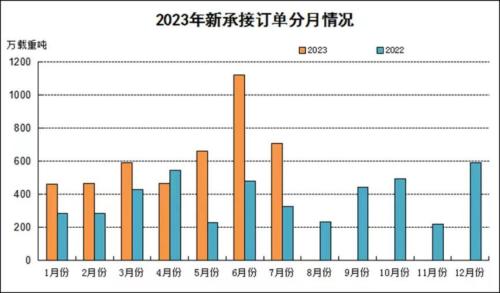 中国船舶工业行业协会数据显示,今年前7月,全国造船承接新船订单4476万载重吨,同比增长74%,而截至7月底,国内造船手持船舶订单达到12790万载重吨,同比增长23.4%。