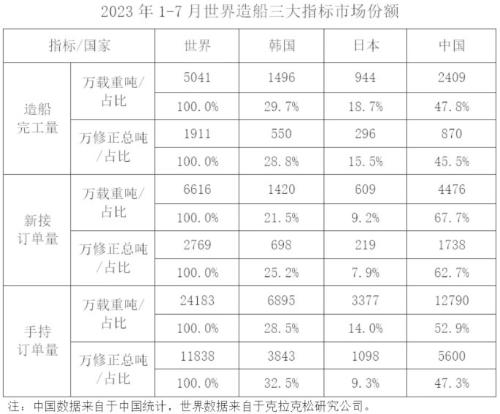 相比之下,日韩前7月的新接订单量全球市场占比则分别为9.2%和21.5%,已经被明显拉开身位。