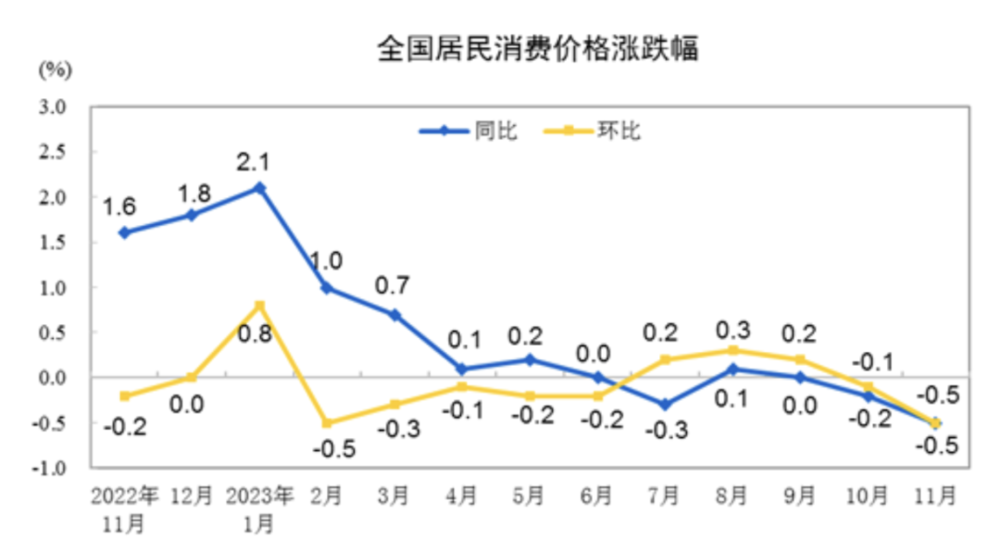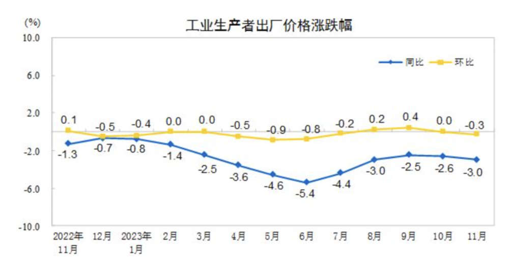 11月的CPI和PPI数据出来了,CPI同比下降0.5%,环比下降也是0.5%;PPI同比下降3.0%,环比下降0.3%,果然是寒意阵阵,与最早公布的PMI数据呼应起来。