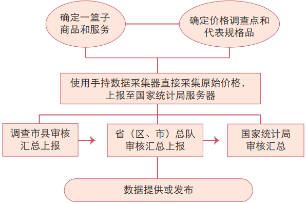 CPI的编制,由统计部门抽选一组居民经常消费的固定数量的商品和服务,统称为“商品篮子”,目前,CPI价格调查食品烟酒、衣着、居住等8个大类,262个基本分类的商品与服务价格,通过加权统计计算出一系列价格指数。CPI的数据来源于全国500个市县,8.8万余家价格调查网点——包括商场、超市、农贸市场、服务网点和互联网电商等。