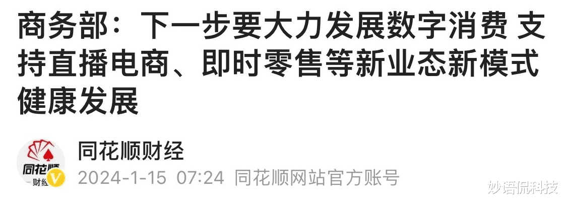 根据商务部表示:“下一步要大力发展数字消费,支持直播电商,即时零售等新业态新模式健康发展。”