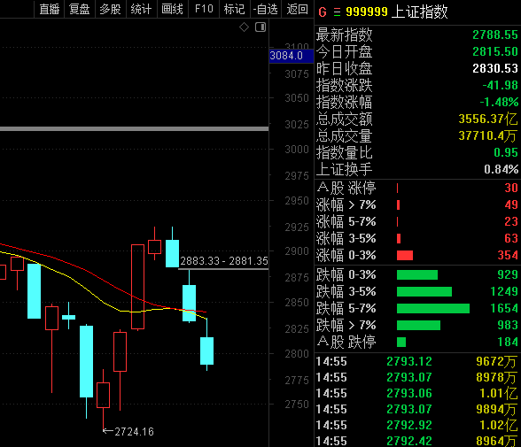 本周三天跌了三天,周一跌了26个点,周二52个点,周三41个点,三天跌了120个点左右,从2900多点又回到了2700多点的状态,重点这里盘中虽然有挣扎的迹象,但是无奈市场没量,加上内资资金出逃的非常厉害,最终每次看着有反弹的迹象都还是上不去,然后继续选择下杀,个股就更加不用说了,每天都是超过四千 五千只票下跌,现在的行情真是让人窒息和绝望,因为完全看不到任何赚钱和回本的希望,你什么都不动每天都是看着账户的钱不断的在少!
