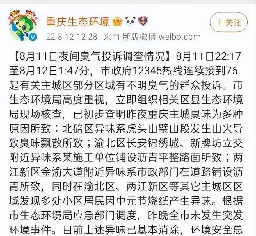 重庆多地反映闻到刺激性臭味!调查结果你认为怎么样?