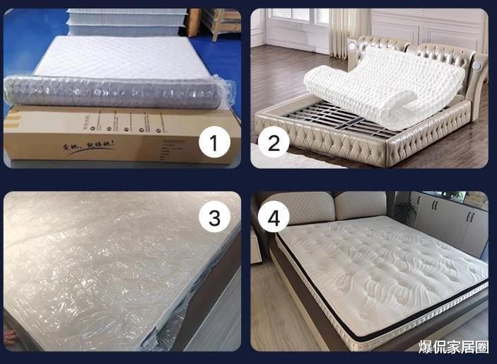 压缩卷包床垫是将床垫压缩后卷起来进行包装的。这种床垫的优点在于节省空间,方便运输和储存。打开后就会自动吸入空气恢复成正常床垫的样子。