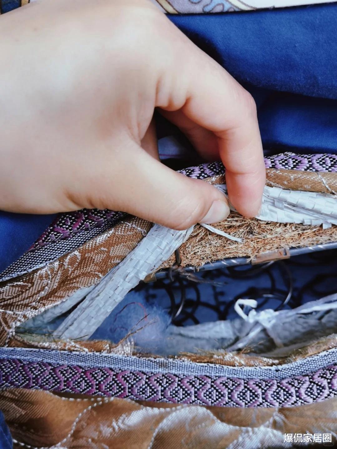 这里教大家怎么辨别毒床垫:以椰棕床垫为例,环保棕一般会夹杂白色纤维,分层也不明显,相反,胶水棕不会夹杂白色纤维,胶水粘合分很明显。