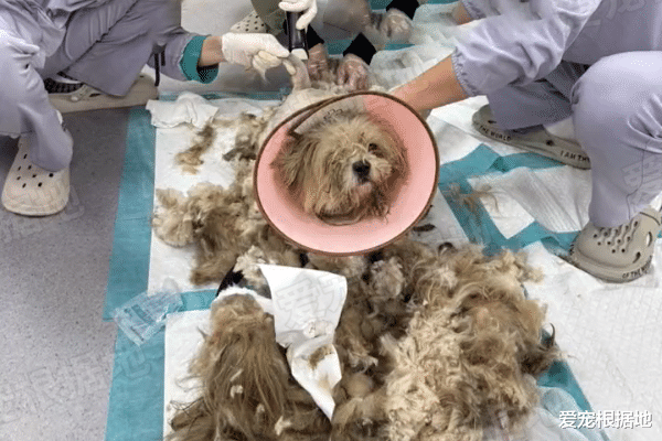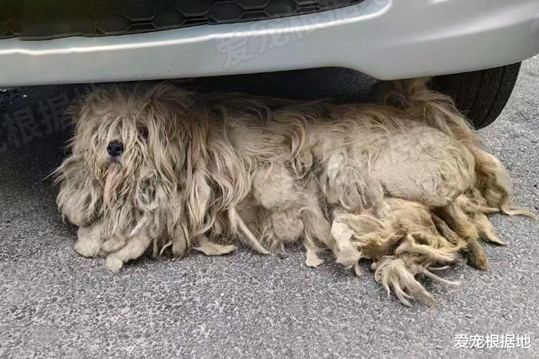 从毛发长度判断,这只狗应该流浪很长时间了,黏在一起的长毛,就像枷锁一样,紧紧包裹在它的身上。让狗狗的每一步,都走的愈发艰难。