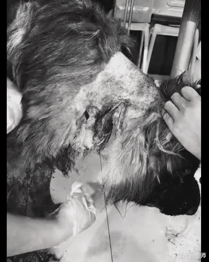 不过此时的狗狗身体太虚弱,经不起打麻醉药了,怕它会再也醒不来,所以只能是在狗狗清醒的时候做了。医生先是把伤口周围的毛都剃掉,然后给伤口做清创,再刮去腐烂的肉。清理干净伤口后,医生开始缝合伤口,花了3个多小时终于是成功完成了。