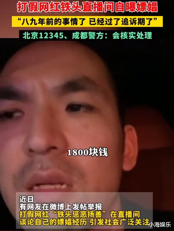铁头也因此获得无数网友的喜欢,甚至被称是“打假英雄”,然而,爆红后的铁头似乎是飘了,为了人气,竟然在直播间里自曝嫖娼往事,结果被网友举报,人设翻车。