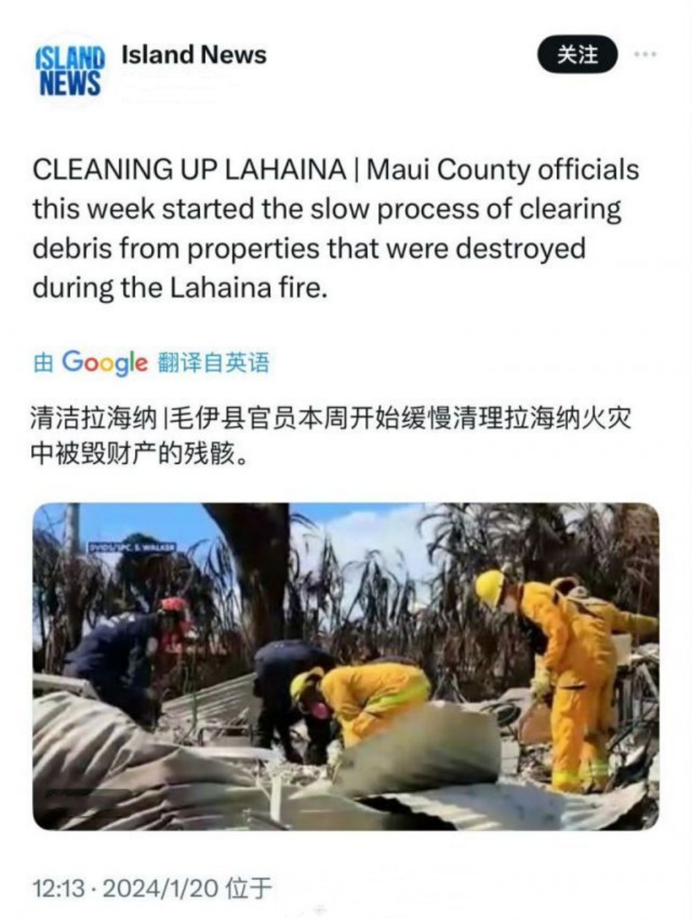 也就是说,在夏威夷山火过去了整整五个月之后,美国官方的救援人员才想起来对灾区废墟进行清理。