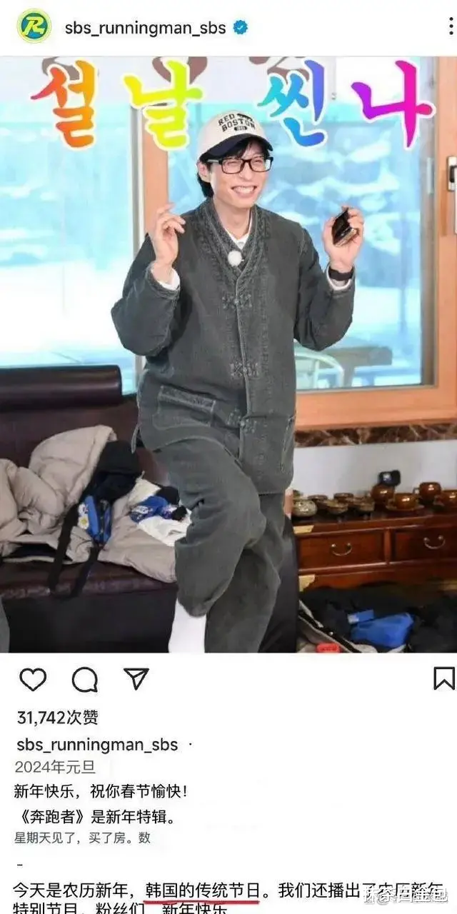 韩国人对中国春节可以说是馋涎已久,在外网搜索春节时,经常会跳出所谓“韩国春节”的内容。在今年2月,韩国RM节目组公开发文,特意用英文说:“农历新年是韩国传统节日”。