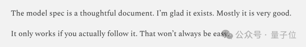 有人指出,OpenAI模型规范是一份经过深思熟虑的文档,它很好。但只有真的遵守它,才会起作用。