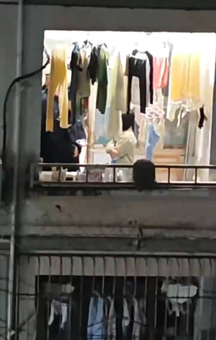 有网友发布的视频显示,两名民警在女生宿舍内询问情况,并打开手电筒从阳台向下探查。